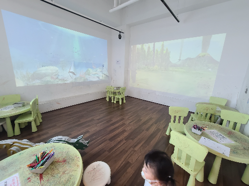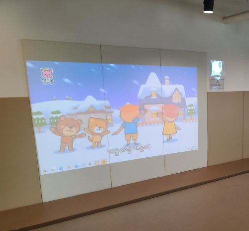 저 스크린에 내가 색칠한 물고기가 둥둥 떠다님 ㅋㅋ