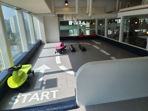 그 미끄럼틀을 내려오면 모션 게임을 할 수 있는 곳이 있다